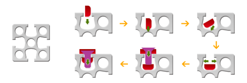 T型槽 特殊T型凹槽設計,加裝零件組件不須拆卸鋁擠型,即任意指定位置安裝螺絲帽,鎖螺絲,方便彈性擴充。 |